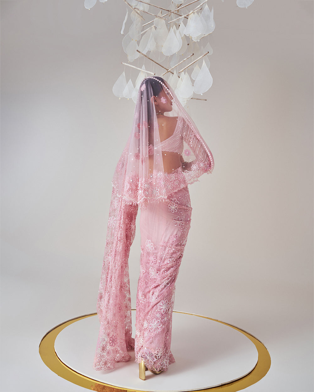 Spring bloom embroidered sari and blouse set (without Head Veil) (MZ SR 06)